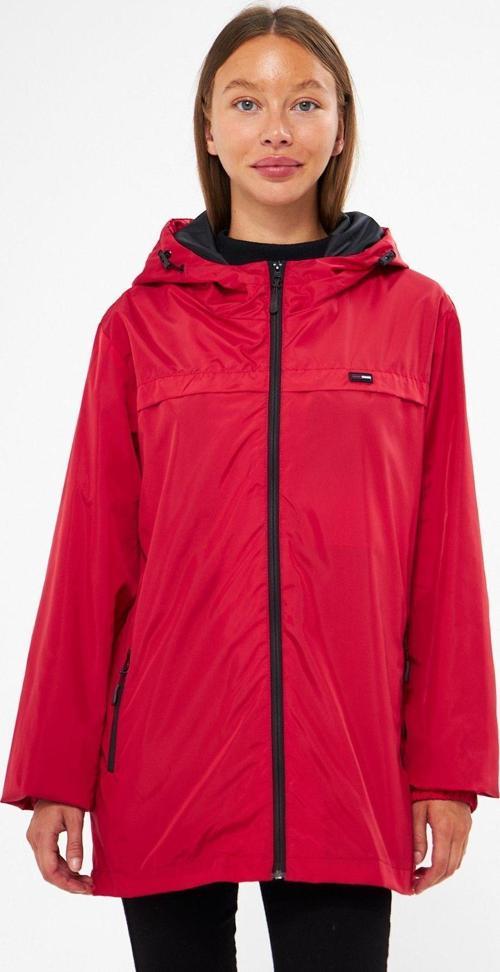 Kadın Kırmızı Içi Astarlı Suya Dayanıklı Kapüşonlu Cepli Spor Yağmurluk - Rüzgarlık Ceket