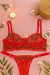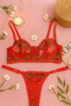 - Zarif kırmızı şeffaf kiraz nakışları ile süslenmiş, feminen tasarımıyla göz alıcı bir görünüm sunar.; - Ayarlanabilir askılı yapısı sayesinde her bedene mükemmel uyum sağlar ve rahat bir kullanım imkanı tanır.; - Balensiz yapısı ile konforlu bir deneyim sunarken, bralette üst silueti modern ve şık bir görünüm kazandırır.; - Esnek materyali sayesinde vücut hatlarınıza mükemmel uyum sağlayarak gün boyu rahatlık hissi verir.; - Çiçekli deseniyle romantik ve feminen detayları ön plana çıkaran bu takım, stil sahibi kadınların tercihi olur.; - Her mevsime uygun tasarımıyla yılın her zamanında gardırobunuzda yerini alabilir; tüm sezonlarda şıklığınızdan ödün vermezsiniz.; - Kolay bakım avantajıyla maksimum 30 derecede elde yıkama önerisiyle pratik kullanım sunar; asarak kurutma ile formunu korur.; - Çıtçıtlı kaplama ile pratik kullanım imkanı sağlarken, dantel dokusuyla sofistike bir dokunuş katmaktadır.; - Tanga alt silueti ile minimalizmi benimseyenler için idealdir; zarifliğiyle ön plana çıkarken rahatlık sunar.; - Esnek yapısı sayesinde vücut hatlarınıza mükemmel uyum sağlar ve gün boyu konforlu hissetmenizi sağlar.; - İç giyim koleksiyonunuzda yerini alacak bu 2'li set, hem şıklığı hem de rahatlığı bir arada sunarak gardrobunuzun vazgeçilmez parçasına dönüşecek.
