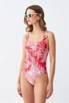 Çamaşır Kenti Kadın Kırmızı Tropikal Desenli Aksesuar Askılı Tek Parça Mayo, plajda şıklığı ve rahatlığı bir arada arayan kadınların favorisi olacak. Tropikal deseni ve askılı tasarımı ile dikkat çeken bu mayo, yaz sezonunda vazgeçilmeziniz olmaya aday.