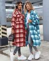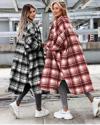 Kadın Kırmızı Uzun Ekose Detay Fırsat ürün Ekose Ceket