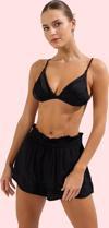 PayBuy Kadın Kısa Boy Straight Kalıp Dokuma Plaj Şort Düz Desen Fırfırlı Detay Yaz Aylarının Vazgeçilmezi