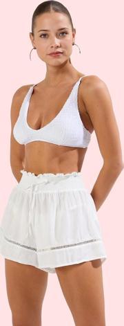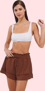 PayBuy Kadın Kısa Boy Straight Kalıp Dokuma Plaj Şort Düz Desen Fırfırlı Detay Yaz Aylarının Vazgeçilmezi