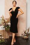 Kadın Kısa Kelebek Kollu Kruvaze Yaka Ithal Krep Midi Elbise