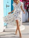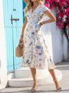 Kadın Kısa Kelebek Kollu Kruvaze Yakalı Belden Kuşaklı Midi Süprem Elbise