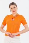 Kadın Kısa Kol Aksesuarlı Fitilli Triko Bady 2471