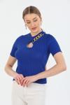 Kadın Kısa Kol Aksesuarlı Fitilli Triko Bady 2471