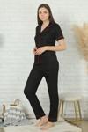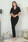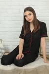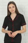 Kadın Kısa Kol Pijama Takımı Viskon Önden Düğmeli