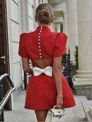 Kadın Kısa Kollu Balıkçı Yaka Arkadan Kelebek Dekolte Detaylı Kısa Atlas Elbise