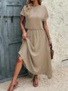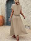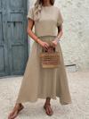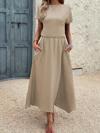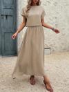 Kadın Kısa Kollu Bisiklet Yaka Bluz Etekli Ithal Keten Ikili Takım