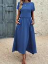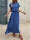 Kadın Kısa Kollu Bisiklet Yaka Bluz Etekli Ithal Keten Ikili Takım