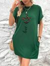 Kadın Kısa Kollu Bisiklet Yaka Cepli Kelebek Baskılı Viskon Elbise
