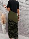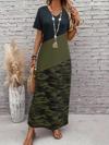 Kadın Kısa Kollu Bisiklet Yaka çok Renkli Maksi Viskon Elbise