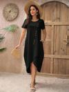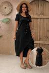 Kadın Kısa Kollu Bisiklet Yaka Düğme Detay Müslim Elbise