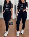 Martcini Kadın Kısa Kollu Bisiklet Yaka File Detaylı Viskon Iki Iplik Krop Ve Eşofman Altı Ikili Takım