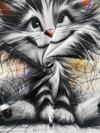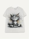 Kadın Kısa Kollu Bisiklet Yaka Kedi Baskılı Süprem Bluz