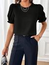 Kadın Kısa Kollu Bisiklet Yaka Kolları Gipeli Ithal Krep Bluz