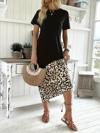 Kadın Kısa Kollu Bisiklet Yaka Leopar Detaylı Midi üst Viskon Alt Süprem Elbise