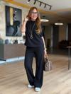 Kadın Kısa Kollu Bisiklet Yaka Omuzdan Düğmeli Viskon Iki Iplik Kısa Bluz Ve Pantolon Ikili Takım