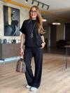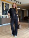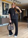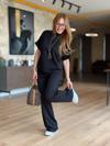 Martcini Kadın Kısa Kollu Bisiklet Yaka Omuzdan Düğmeli Viskon Iki Iplik Kısa Bluz Ve Pantolon Ikili Takım