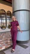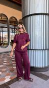Martcini Kadın Kısa Kollu Bisiklet Yaka Omuzdan Düğmeli Viskon Iki Iplik Kısa Bluz Ve Pantolon Ikili Takım