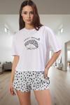 Premium pamuk kumaşın yumuşaklığı ve nefes alabilirliği, cildinizin gün boyu rahat etmesini sağlar. Kirpi deseni ve 'Sweet Dreams' yazısı ile uyku öncesi huzurlu bir atmosfer yaratır. Şortun lekeli mint rengi, üstün beyaz rengi ile mükemmel bir uyum sağlar ve size modern bir görünüm kazandırır. Boru paça şort, rahat ve şık bir tarz sunar.