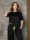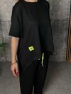 Kadın Kısa Kollu Bisiklet Yaka Viskon Iki Iplik Bluz Ve Pantolon Ikili Takım