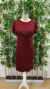 Kadın Kısa Kollu Bisiklet Yaka Yandan Büzgülü Midi Viskon Elbise