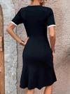 Kadın Kısa Kollu Bisiklet Yaka Yandan Yırtmaçlı Renkli şerit Detay Janjan Krep Elbise