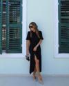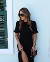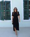 Kadın Kısa Kollu Bisiklet Yakalı Yandan Yırtmaçlı Büzgülü Janjan Krep Elbise