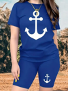 Kadın Kısa Kollu çapa Baskılı Viskon Ikili Takım