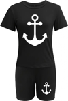 Kadın Kısa Kollu çapa Baskılı Viskon Ikili Takım