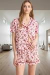 Rahatlığı ve şıklığı bir arada arayan kadınlar için ideal olan bu pijama takımı, yaz gecelerinin vazgeçilmezi olacak. %100 viskoz kumaştan üretilen takım, yumuşak dokusuyla teninize mükemmel bir uyum sağlar ve gün boyu konfor sunar. Çiçekli desen, feminen bir hava katarken, kısa kollu üst ve şort alt rahat hareket imkanı sağlar. Regular kalıbıyla her vücut tipine uyum sağlar. Gömlek yakası ve biyeli detaylarıyla şıklığı tamamlayan pijama takımı, evde dinlenirken veya uyurken kendinizi özel hissetmenizi sağlayacak. Makinede kolayca yıkanabilir olması da pratik kullanım sunar.
