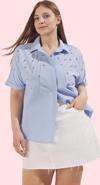 Ersefa Kadın Kısa Kollu Dokuma Gömlek Taş Detaylı Büyük Beden Rahat Kalıp Yaz Aylarının Vazgeçilmezi
