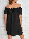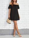 Kadın Kısa Kollu Fırfır Detay Madonna Yaka Mini Ithal Krep Elbise