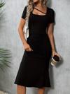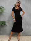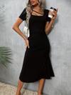 Kadın Kısa Kollu Kare Yakalı Ip Detaylı Janjan Krep Elbise