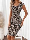 Kadın Kısa Kollu Kare Yakalı Leopar Desenli Dalgıç Elbise