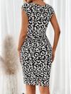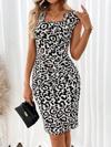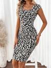 Kadın Kısa Kollu Kare Yakalı Leopar Desenli Dalgıç Elbise