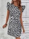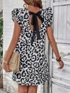Kadın Kısa Kollu Kolları Fırfır Detay Arkası Bağlamalı Leopar Desen Kolsuz Mini Mikro Elbise