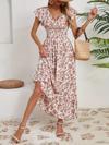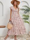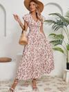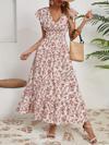 Kadın Kısa Kollu Kruvaze Yaka Beli Lastikli çiçek Desenli Elbise