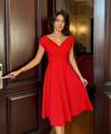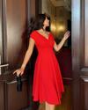 Kadın Kısa Kollu Kruvaze Yaka Eteği Volanlı Krep Elbise