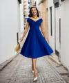 Kadın Kısa Kollu Kruvaze Yaka Eteği Volanlı Krep Elbise