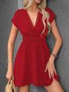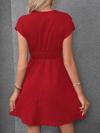 Kadın Kısa Kollu Kruvaze Yakalı Beli Lastikli Bürümcük Elbise