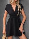 Kadın Kısa Kollu Kruvaze Yakalı Beli Lastikli Bürümcük Elbise