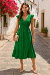 Kadın Kısa Kollu Kruvaze Yakalı Beli Lastikli Müslim Elbise