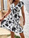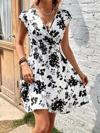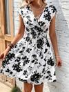 Kadın Kısa Kollu Kruvaze Yakalı çiçekli Desenli Süprem Elbise