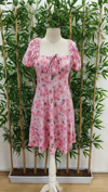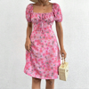 Kadın Kısa Kollu Mini çiçek Baskılı Bağcık Detay Süprem Midi Boy Elbise