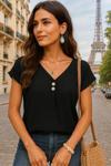 Kadın Kısa Kollu önü Düğmeli V Yaka Aerobin Bluz