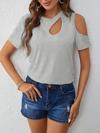 Kadın Kısa Kollu Tek Omuzu Açık Damla Detaylı Viskon Bluz