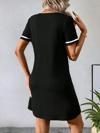 Kadın Kısa Kollu V çizgili Yakalı Kısa Viskon Elbise