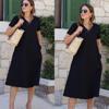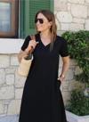 Kadın Kısa Kollu V Yaka Cepli Viskon Elbise